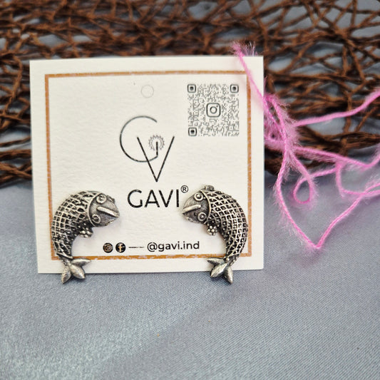 GAVI® Handcrafted Oxidized Fish Studs for a Timeless Ethnic Look