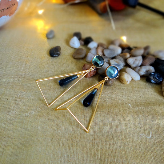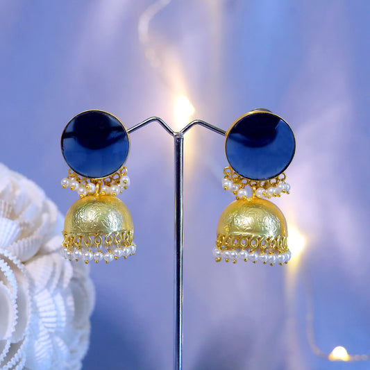GAVI® Blue Onyx Stone Bold Kissed- By- Fire Gold Jhumkis