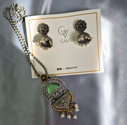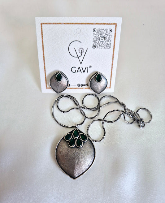GAVI® Oxidized Green stone Necklace set