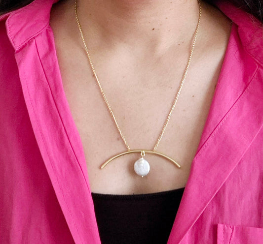 GAVI® Crescent with Freshwater Pearl Drop Necklace.