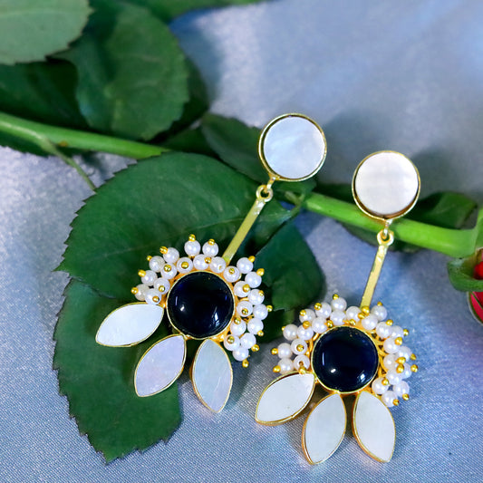 GAVI® 'Broken Flower' Earring With Bright Blue Onyx Carpel and MOP Petals.