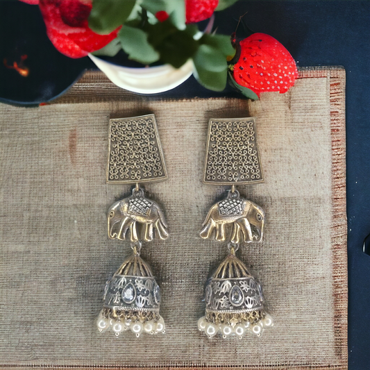 GAVI® Aesthetic Oxidised elephant Jhumkis for an Ethnic Banjara feel.