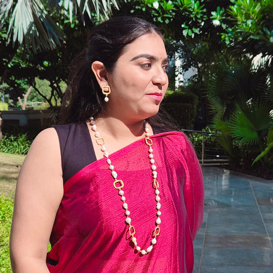 GAVI® Freshwater Pearls Gold Square Necklace Set