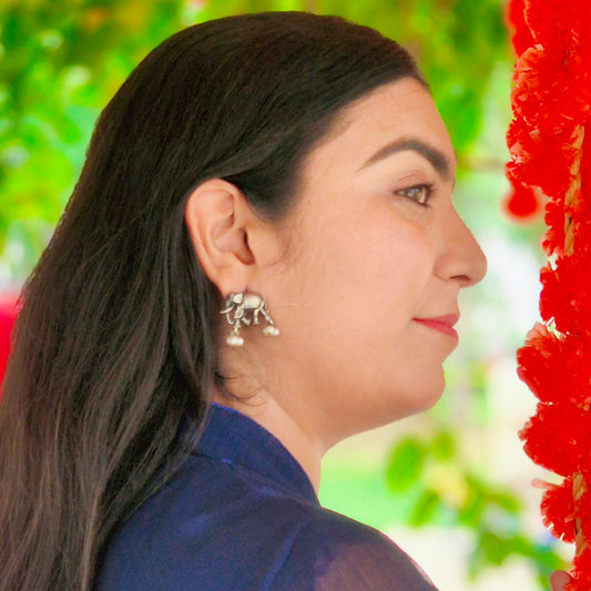 GAVI® Oxidized Royal Elephant Beads Drop Earrings
