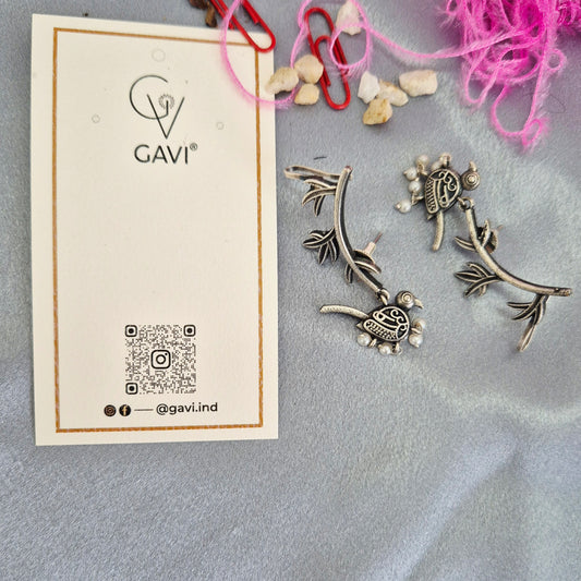 GAVI® Oxidized Leaf Ear cuff with Bird Jhumki