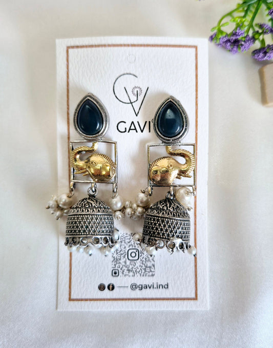 GAVI® Aesthetic Oxidised elephant Jhumkis for an Ethnic Banjara feel.