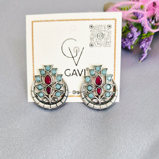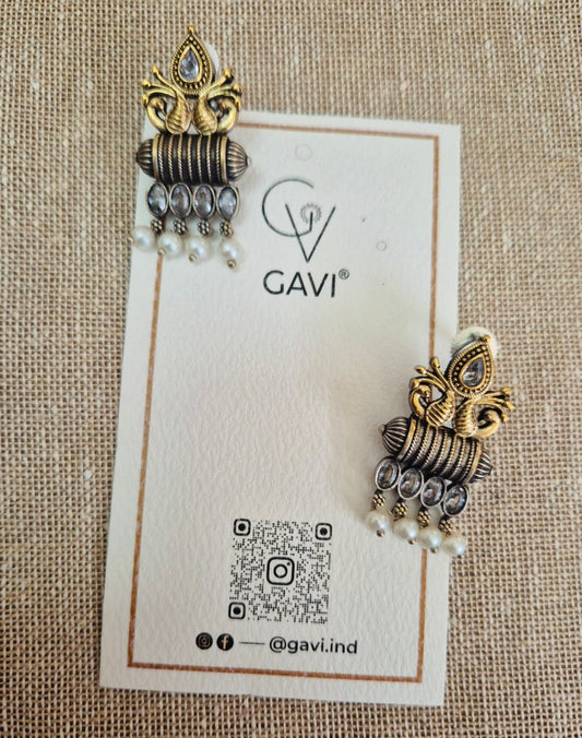 GAVI® 'Pair-Of-Peacocks' Large Oxidized Folk Dance Earrings